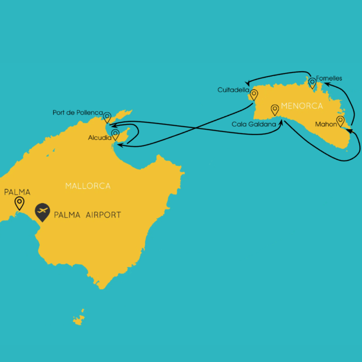 Менорка і Майорка відомі своїми відокремленими бухтами та білосніжними пляжами. Впродовж всієї подорожі ми будемо досліджувати їх, зупиняючись для купання і насолоджуючись мальовничими краєвидами.